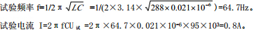 五、裝置容量確定 35kV/300mm²電纜,長度2000m,電容量≤0.39μF,試驗頻率為30~300Hz,試驗電壓52kV。